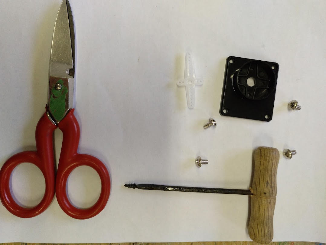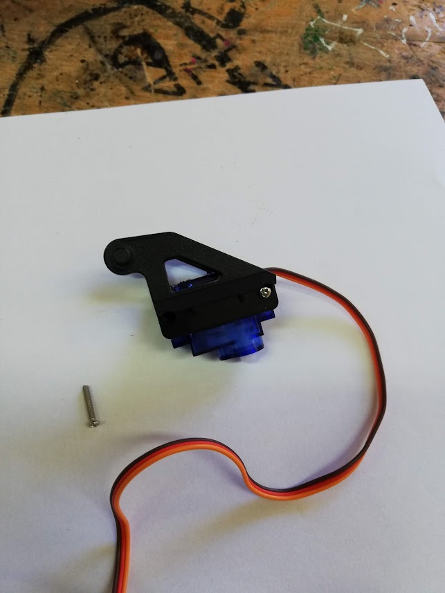 Montamos ahora el soporte del servo, para ello vemos en la foto siguiente el material necesario:
