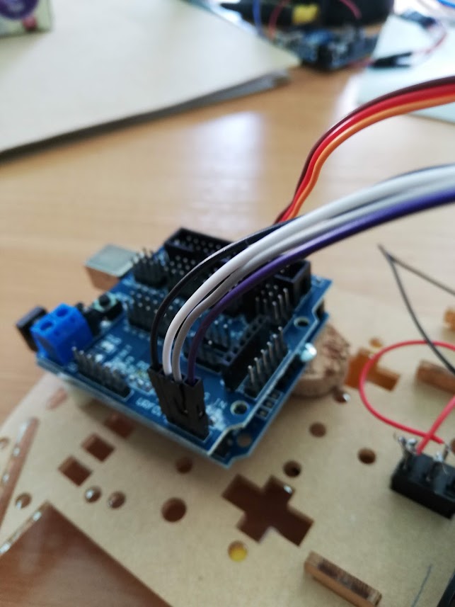 Conectamos los dos negros al segundo conector del controlador de motores, tal como se ven en la foto: