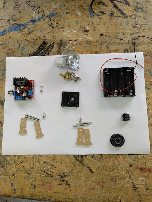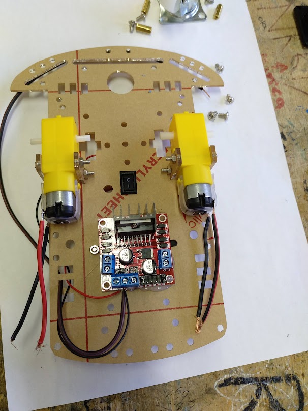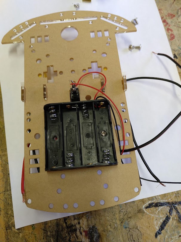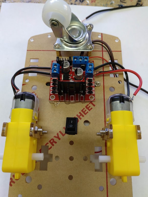 Vamos a montar en primer lugar el portapilas, el interruptor, el controlador de motores y los motores.