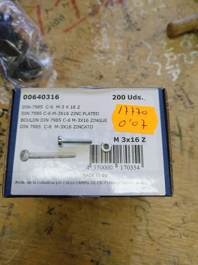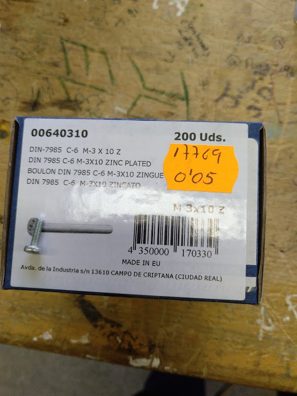 Pedimos al profesor 4 tornillos de M3x10 mm, para la otra parte donde va la rueda loca, tal como se ven en la foto: