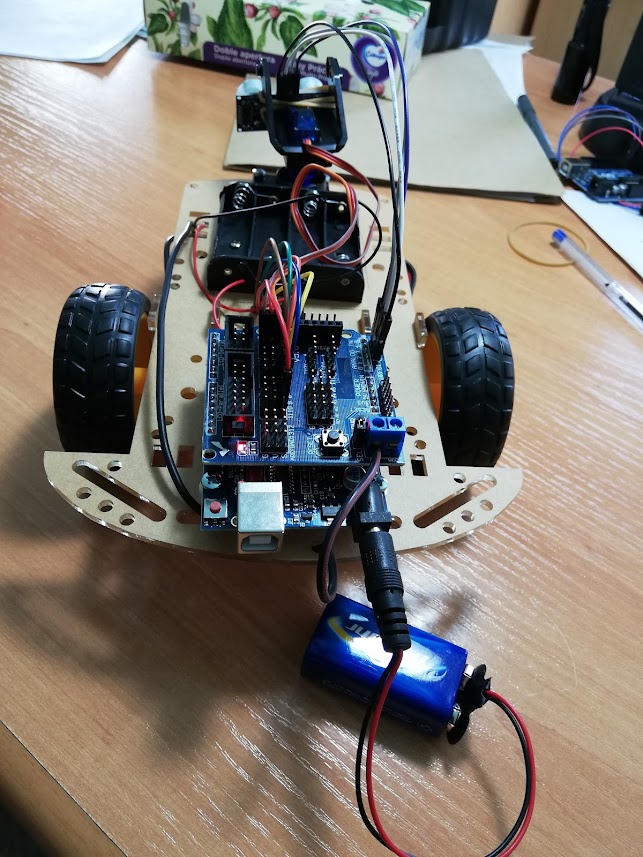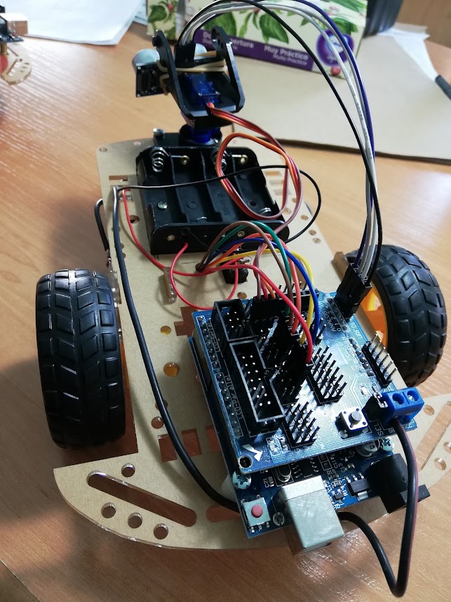El coche robot, ya esta construido. Debemos pasar ahora a programarlo para ver que hace lo que queremos que haga.