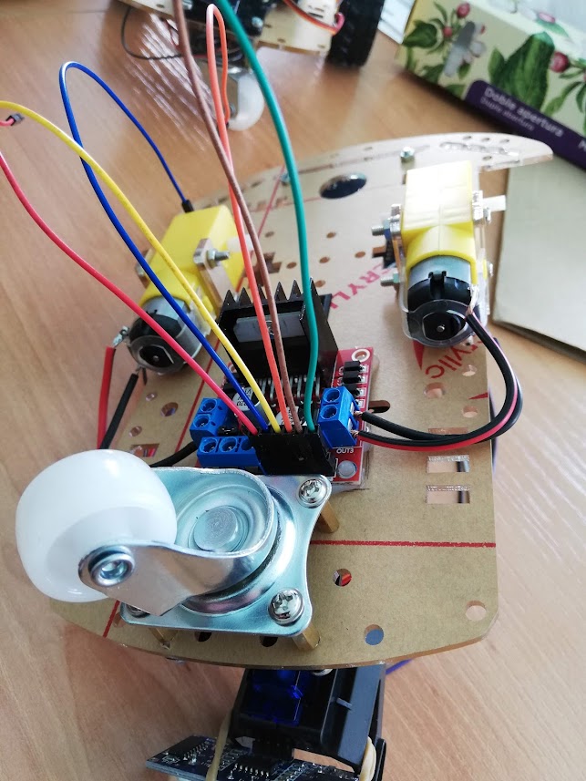 Fijamos ahora los cables de los motores al controlador de motores, tal como se ve en la foto:
