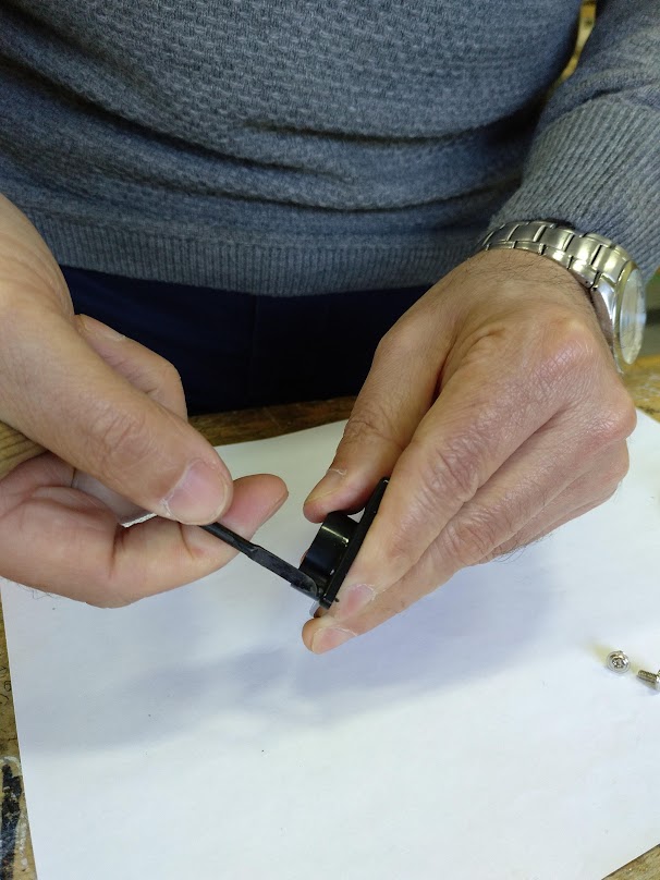 Cortamos la pieza con unos alicates de corte (pidelos) y la atornillamos como se ve en la foto ( puede ser con un tornillo, o preferentemente con los dos ).