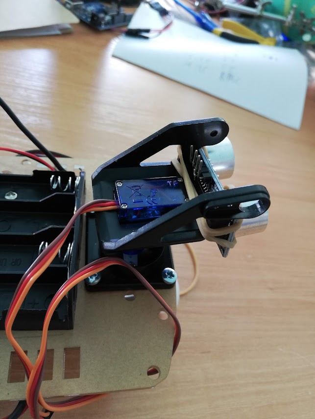 El sensor de ultrasonidos se coloca con una goma, hilo o similar (cada uno como pueda):